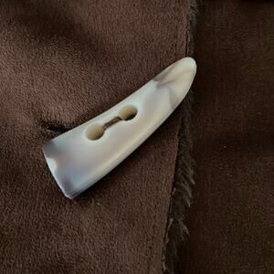 Brown Faux Suede jacket with faux fur lining, embroidered, antler horn look buttons