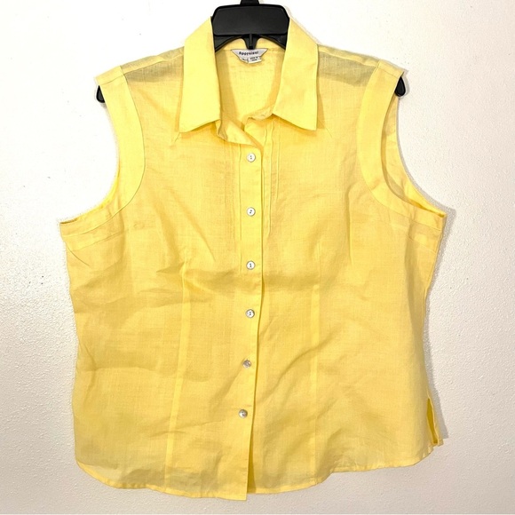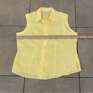 Appraisal Button Top Sleeveless Yellow Shirt Ramie Back Seams Casual Summer XL