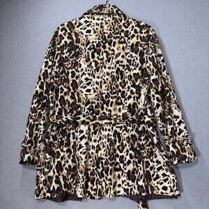 Appraisal Y2K Retro Big Button Leopard Print Trench Coat Jacket XL Bold Mob Wife