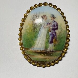 Approx 2” Resin Cameo Brooch Gold Tone Oval Vintage Estate Piece