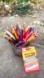 Approx. 51 Colored Pencils and 1 box of crayons. These are about 35 yrs. old and used but in good shape and they have a lot of good use left in them. Container in pic not included.