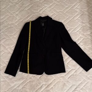 Timeless black jacket with a tailored fit. Features a two-button closure and sleek design. Ideal for professional or casual wear.
