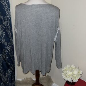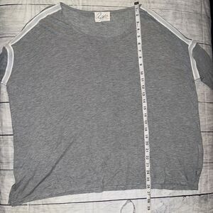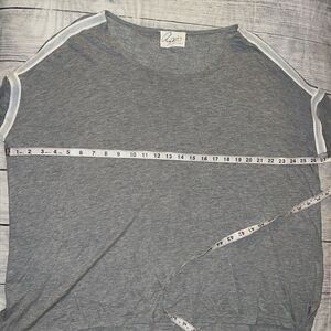 Good, preloved condition. Apres Ramy Brook Oversized Tee Mesh Stripe. Long sleeves. Heathered gray. Drop sleeves. Thumb holes.