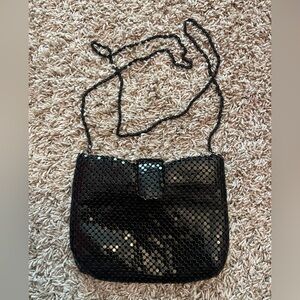 Super trendy and cute vintage mesh sparkly cross body clutch bag. Magnet snap closure.