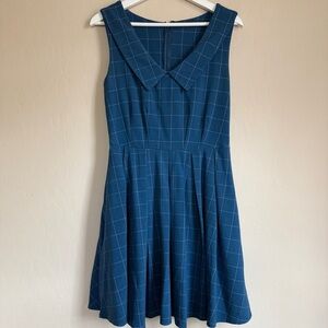 Apricity Windowpane Plaid Checked Retro Sunday Dress Blue Dapper Women’s M