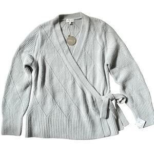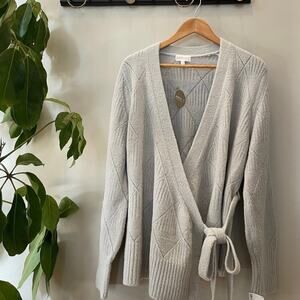 Apricot 1X Curve Wrap Sweater | Light Grey, Tie-Waist, Soft Knit, NWT