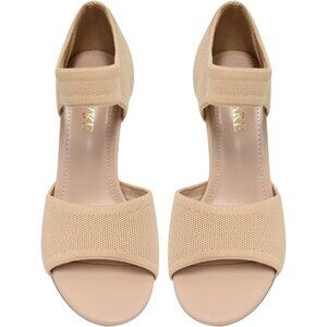 Apricot 3 Inches Peep Toe Synthetic Stiletto Stretchy Heeled Sandals for Women