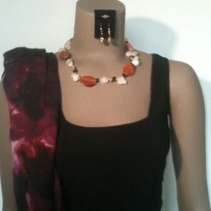 Apricot and white Agate semi-precious gemstone . Cognac accenting crystals and brass goldstone beads. This piece is versatile for any situation. Earrings included. Handmade