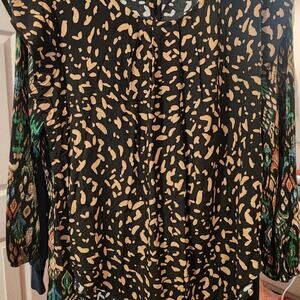 Elevate your everyday style with this flattering blouse from Apricot. Featuring a lightweight fabric in a striking black and tan abstract print, this versatile top has a slightly rounded hem, subtle pleating down the front, and feminine cap sleeves. Perfect for dressing up with trousers or keeping casual with your favorite denim.