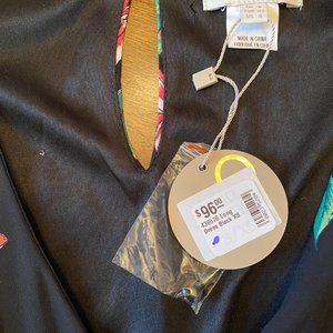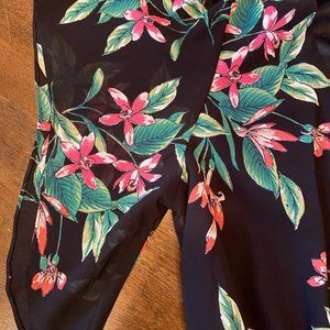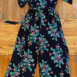 Apricot Black floral jumpsuit, Size XS NWT! Full length pantsuit, keyhole opening in back, higher elastic waist with drawstring tie.