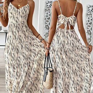 Apricot Boho Women's Belted Spaghetti Strap Patchwork Dress