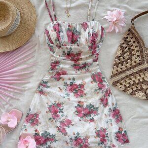 Apricot Boho Women's Floral Print Vacation Flowy Slip Dress