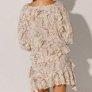 Apricot Boho Women's Floral Ruffle Tiered Flowy Silhouette Style Long Sleeve Min