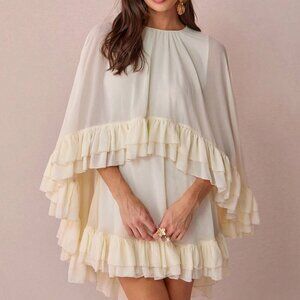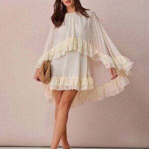 Apricot Boho Womens Romantic Cape Ruffle Hem Mini Dress
