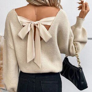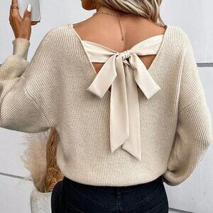 Apricot Casual Womens Back Strap Lantern Sleeve Sweater