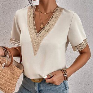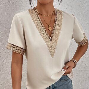 Apricot Casual Women's Contrast Guipure Lace Blouse