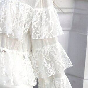 Apricot Casual Women's Contrast Lace Ruffle Hem Elegant Blouse
