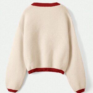 Apricot Casual Women's Cute Crochet Strawberry Print Button sweater Cardigan