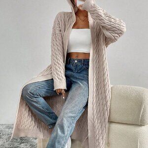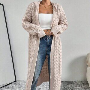 Apricot Casual Women's Drop Shoulder Open Front Hooded Longline Cardigan