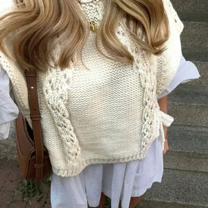 Apricot Casual Women's Fashion Side Tie Round Neck Cap Sleeve Sweater