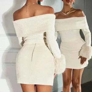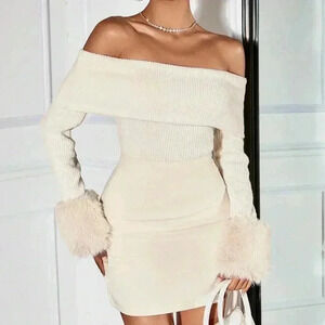 Apricot Casual Women's Furry Cuff Off Shoulder Fitted Blouse