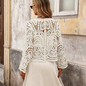 Apricot Casual Women's Hollow Out Crochet Cardigan top