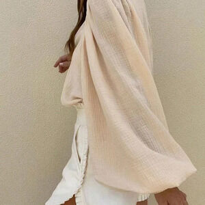 Apricot Casual Women's Lantern Sleeve Loose Shirt