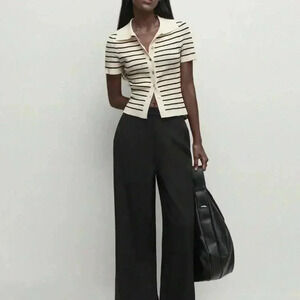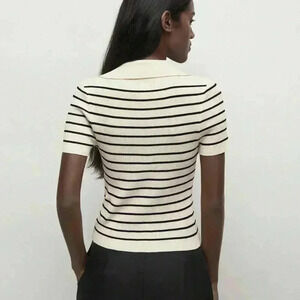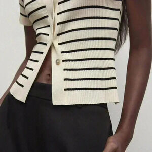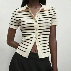 Apricot Casual Women's Lapel Striped Button Knitted Sweater