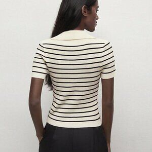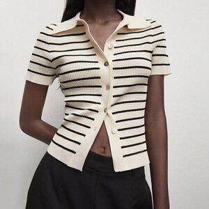Apricot Casual Women's Lapel Striped Button Knitted Sweater