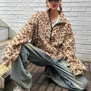 Apricot Casual Women's Leopard Print Basic Long Sleeve Sweatshirt