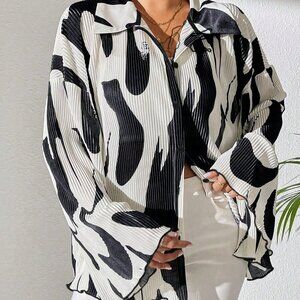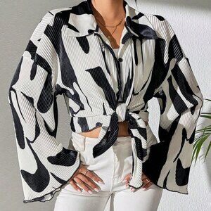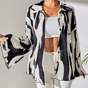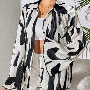 Apricot Casual Women's Loose Fit Drop Shoulder Long Sleeve Pleated Shirt
