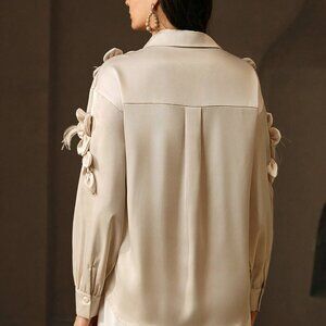 Apricot Casual Women's Loose Khaki Turndown Collar Long Sleeve Blouse