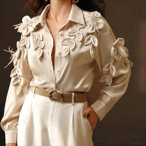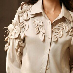 Apricot Casual Women's Loose Khaki Turndown Collar Long Sleeve Blouse