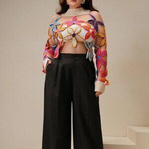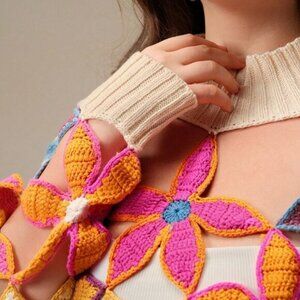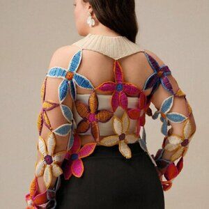 Apricot Casual Women's Plus Size Floral Crochet Hollow Out Sexy Sweater
