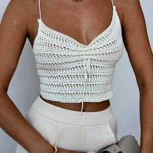 Apricot Casual Women's Ruched Drawstring Beach Vacation Crochet Knit Tank Top