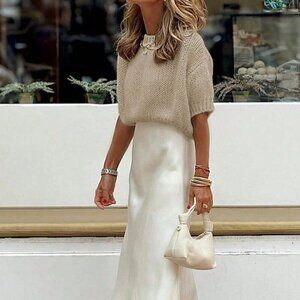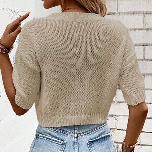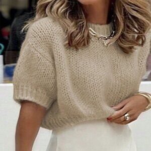 Apricot Casual Women's Short Sleeve Knitted Sweater With Round Neck