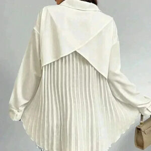 Apricot Casual Women's Solid Color Drop Shoulder Long Sleeve Back Pleated Shirt
