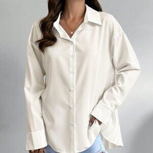 Apricot Casual Women's Solid Color Drop Shoulder Long Sleeve Back Pleated Shirt