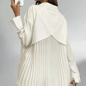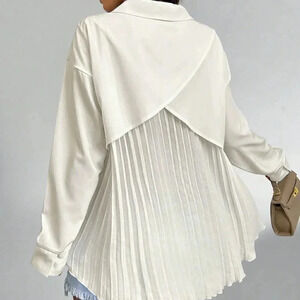 Apricot Casual Women's Solid Color Drop Shoulder Long Sleeve Back Pleated Shirt