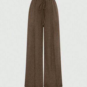 Apricot Casual Women's Solid Color Short Sleeve Bodysuit And Drawstring Pants