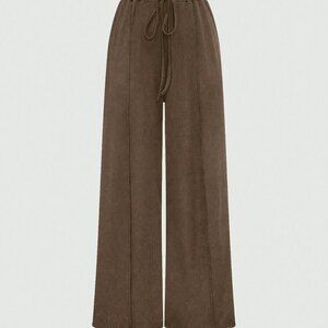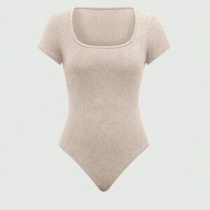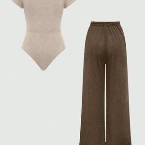 Apricot Casual Women's Solid Color Short Sleeve Bodysuit And Drawstring Pants