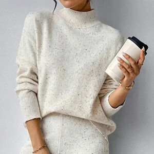 Apricot Casual Women's Solid Stand Collar Sweater