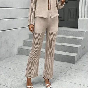 Apricot Casual Womens Solid Tie Front Cardigan & Knit Pants