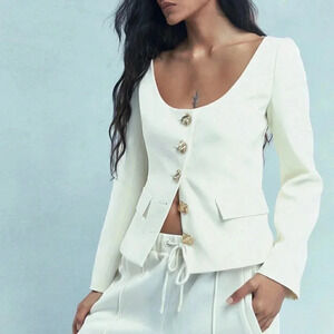 Apricot Casual Women's Statement Button Scop Neck Long Sleeve Jacket