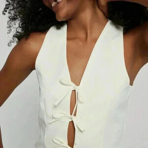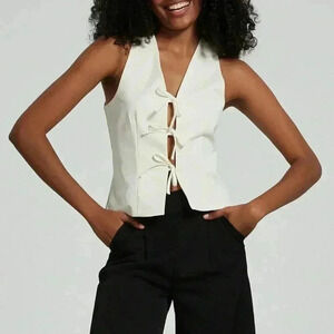 Apricot Casual Women's Summer Solid Color V-Neck Knotted Tank Top