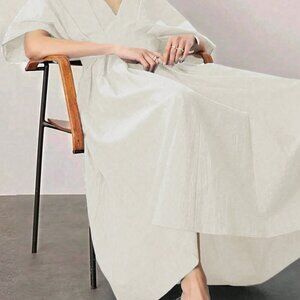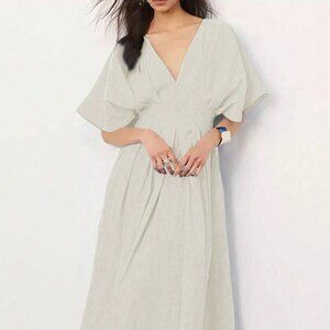 Apricot Casual Women's V-Neck Waist-Cinching Pleated Batwing Long Dress