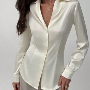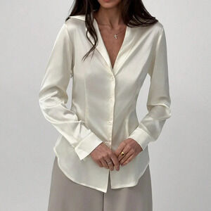 Apricot Casual Women's Waist Cinched Comfortable Satin Collared Cardigan