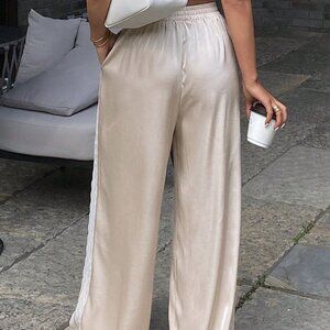 Apricot Chic Women's Contrast Lace Elastic Waist Wide Leg Pants