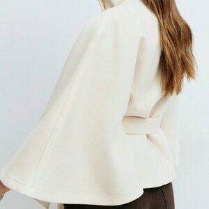 Apricot Elegant Women's Cloak With Stand Collar & Belt
