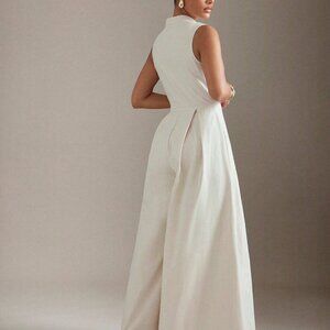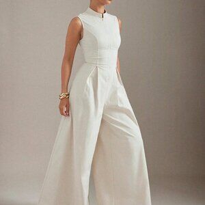 Apricot Elegant Women's Extreme Wide Leg Zip Front Sleeveless Jumpsuit